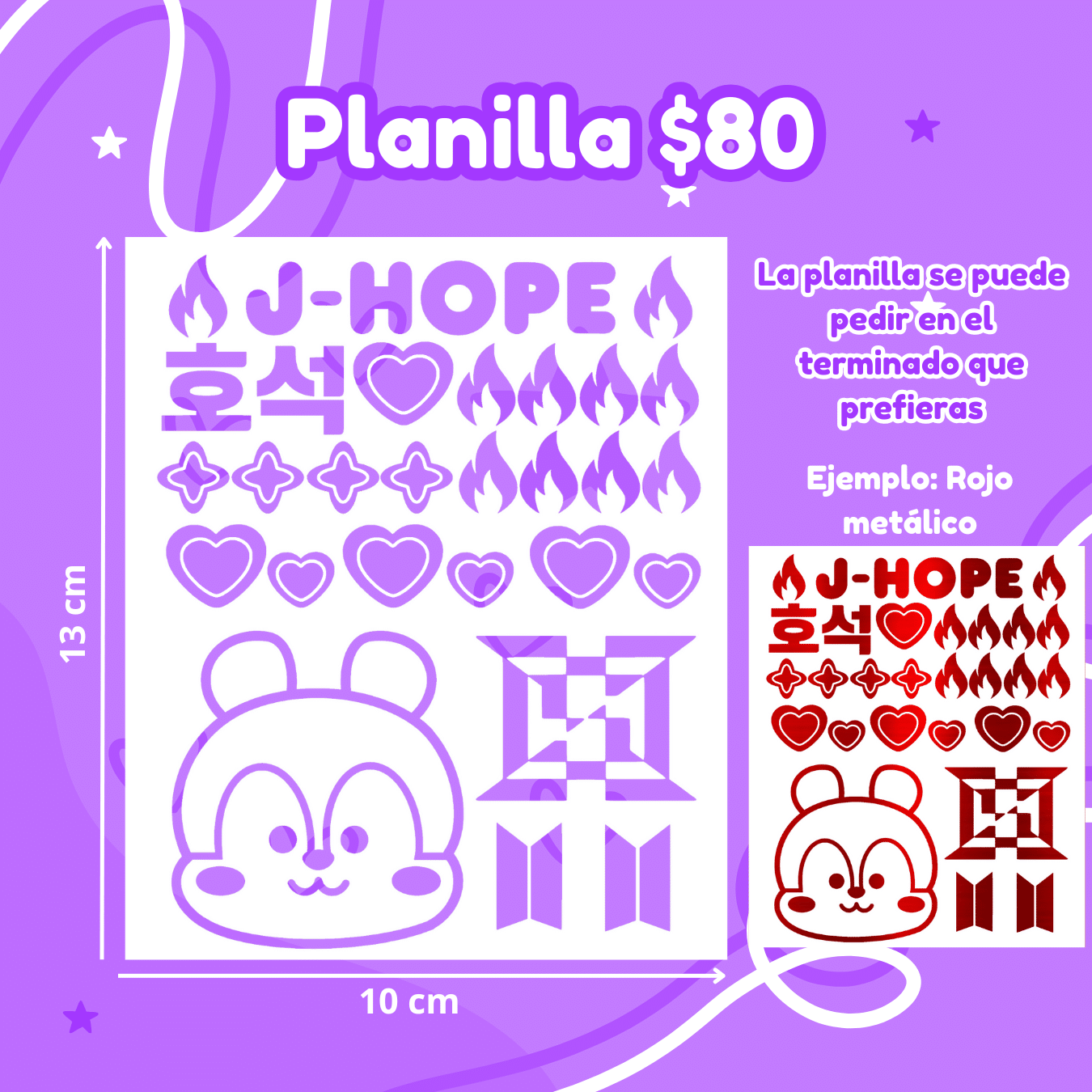 Elige tu color favorito para decorar tu ARMY BOMB, nuestras planillas de stickers para Lightstick son perfectas para decorar a tu medida y dejar volar tu imaginación. Desde decoraciones sencillas hasta muy elaboradas con solo 1 planilla de stickers, en esta planilla se incluyen 38 stickers de diferentes tamaños, con los cuales puedes decorar lo que prefieras: